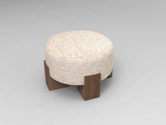 Mid-Century Modern Ottoman/Stool with Rich Cream Boucle Fabric, Solid Wood Walnut Brown Finish Base